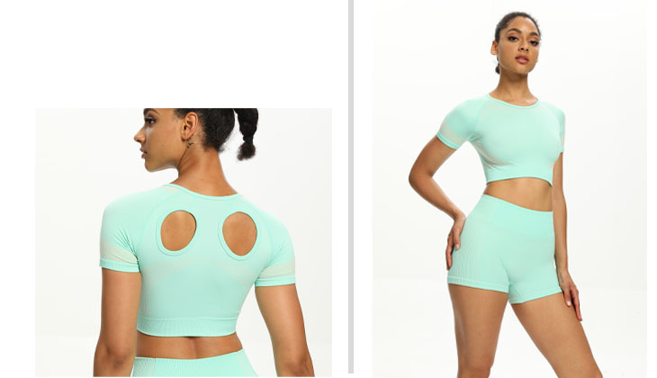 Tuklasin ang cut-out na istilo sa iba pang mga aktibong damit ---- itaas ng palakasan ng palakasan. Ang tuktok ng pag-crop na ito na may seamless tecture + mga detalye ng ginupit na ginawa para sa kamangha-manghang sangkap ng fitness sa tag-init!