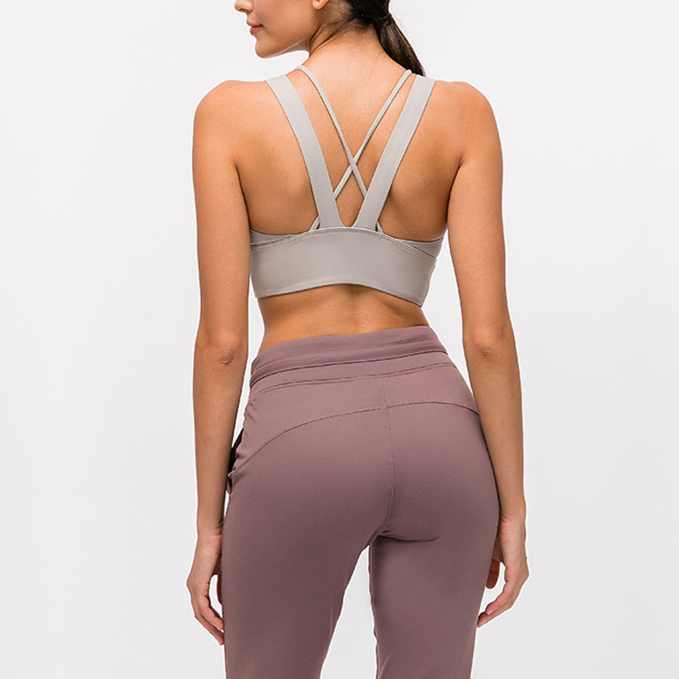 Mataas na Epekto. Katamtamang suporta. Mga natatanggal na tasa. Mag-cross-strap pabalik. Mataas na saklaw.